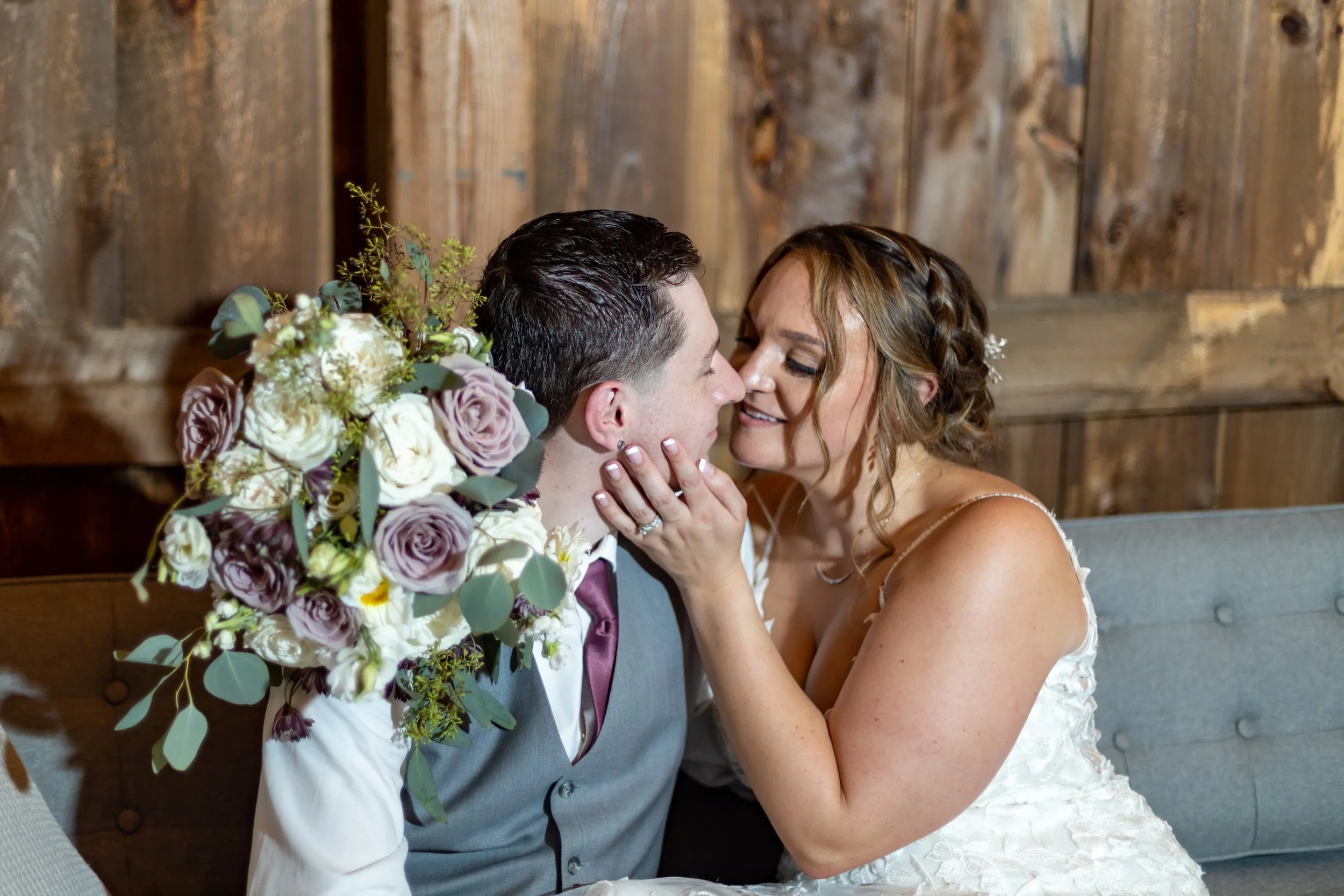 Kayla & Ethan's wedding was stunning this past Fall. Continuing their rustic farm theme from their engagement session at Pineland Farms, their wedding was at The Barn at Silver Oaks in Winthrop, ME. A modern barn venue with elegances throughout the grounds. The Maine fall foliage was in swing with hints of color popping throughout the day, tears of joy & laughter around every corner. Heartfelt speeches from the wedding party, and tender moments between the bride & groom.