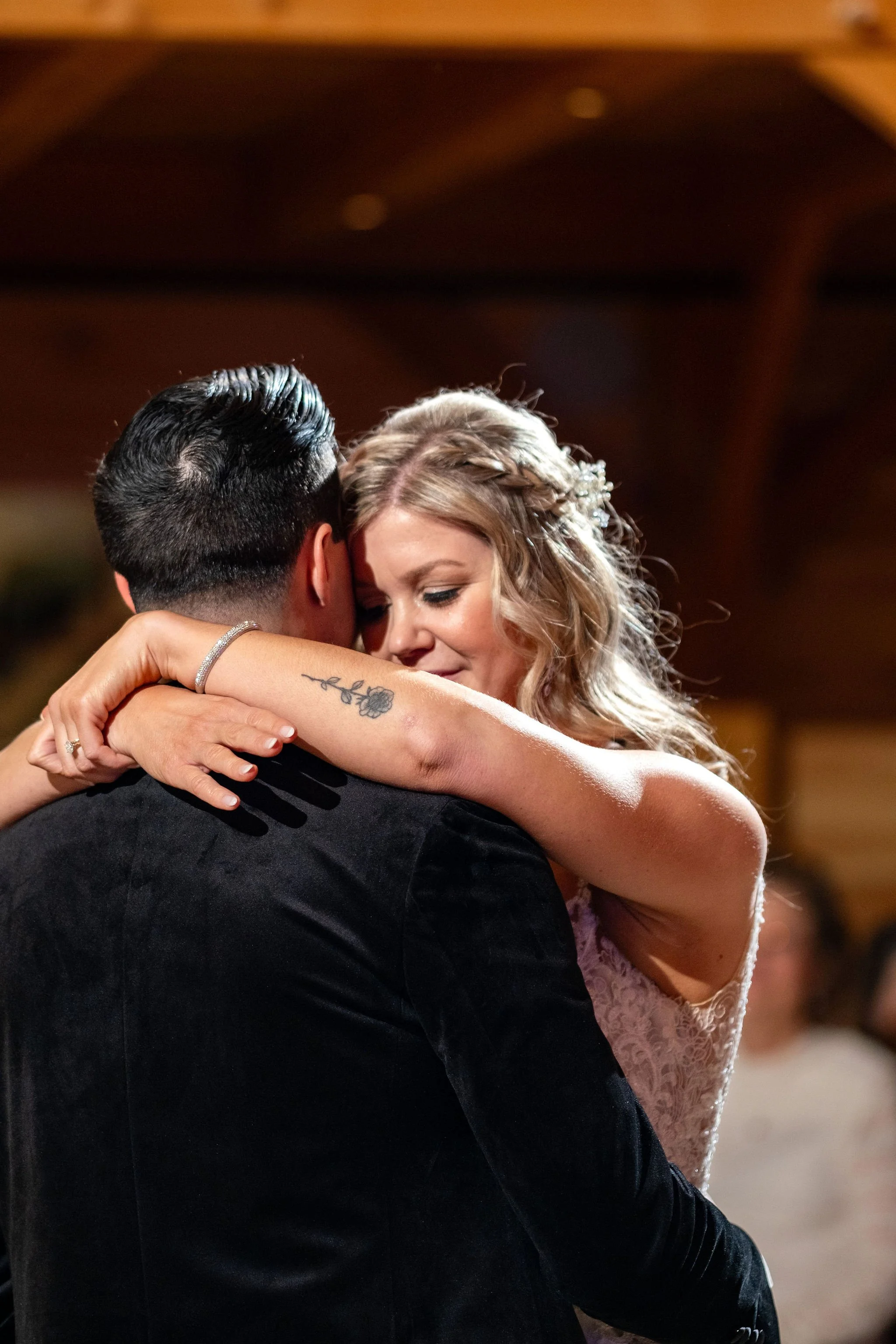 Guests retreated to the warmth of the barn for a cozy cocktail hour, enjoying hand-crafted drinks and appetizers by the glow of fairy lights and soft candlelight. The reception, filled with laughter and dancing, began shortly thereafter. The first dance to Luke Combes’ “Better Together” was a highlight, capturing the essence of Alyssa and Justin’s relationship. The officiant’s words during the ceremony added to the enchantment: "Your lives blending together even more and the connections of your family and friends expanding as you embark on this great adventure.