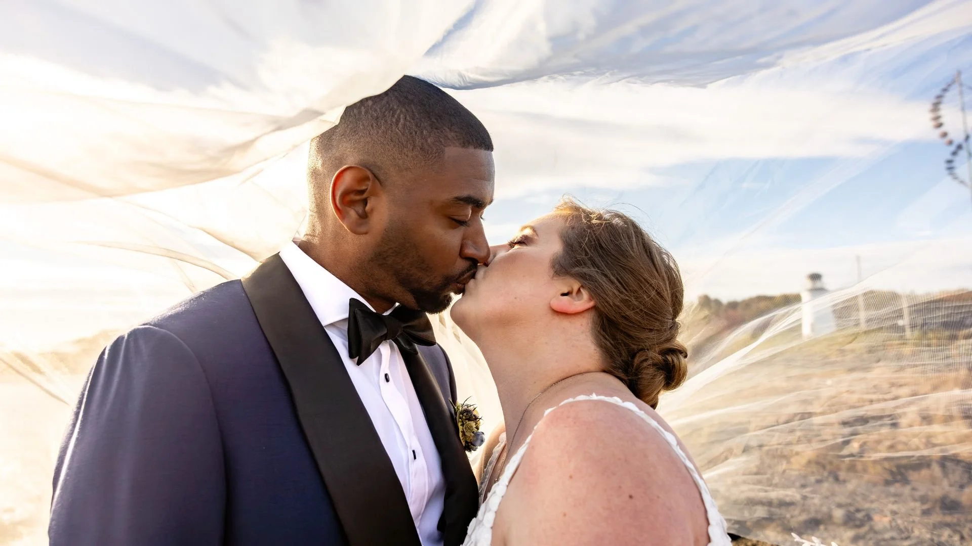 Guests gathered outside beside the lighthouse as the afternoon sun began to drift lower. The ceremony felt timeless and simple, with the soft sound of waves rolling in the background. When Kaitlyn and Darren exchanged vows, it felt like the world slowed down for a moment.