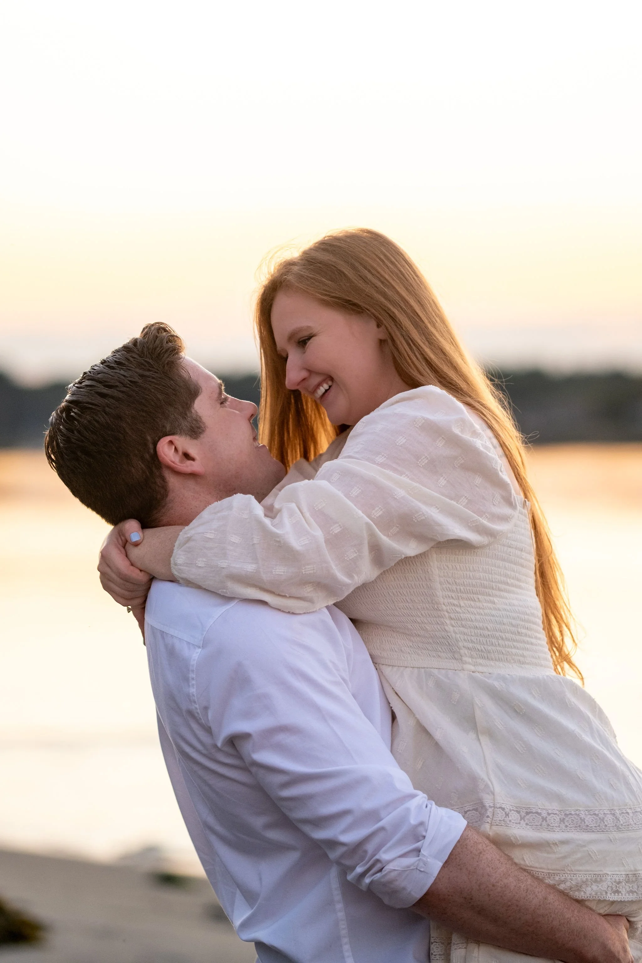 We ended the evening on the sandy shore, where the two couldn’t resist a few playful spins and lifts as the tide rolled out. It was the perfect ending to a golden hour engagement session — romantic, joyful, and filled with anticipation for the wedding day ahead.