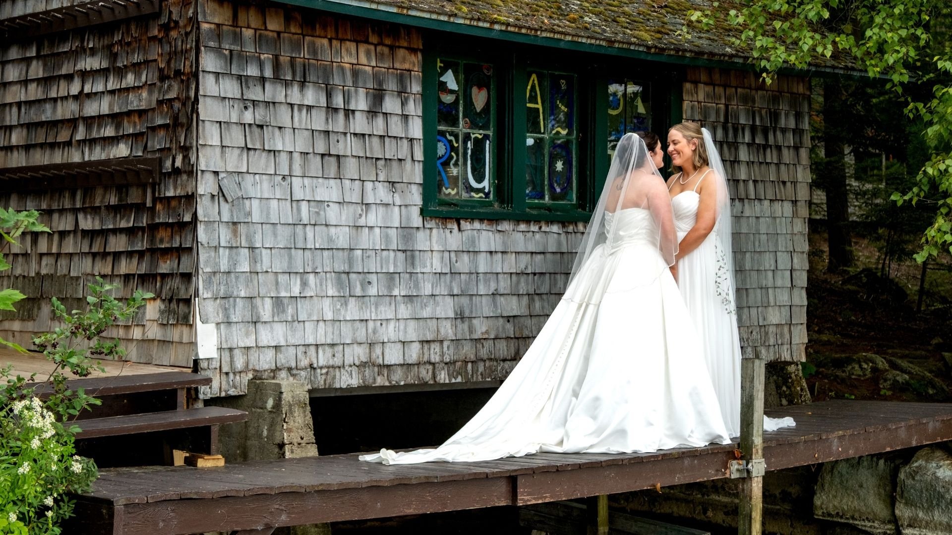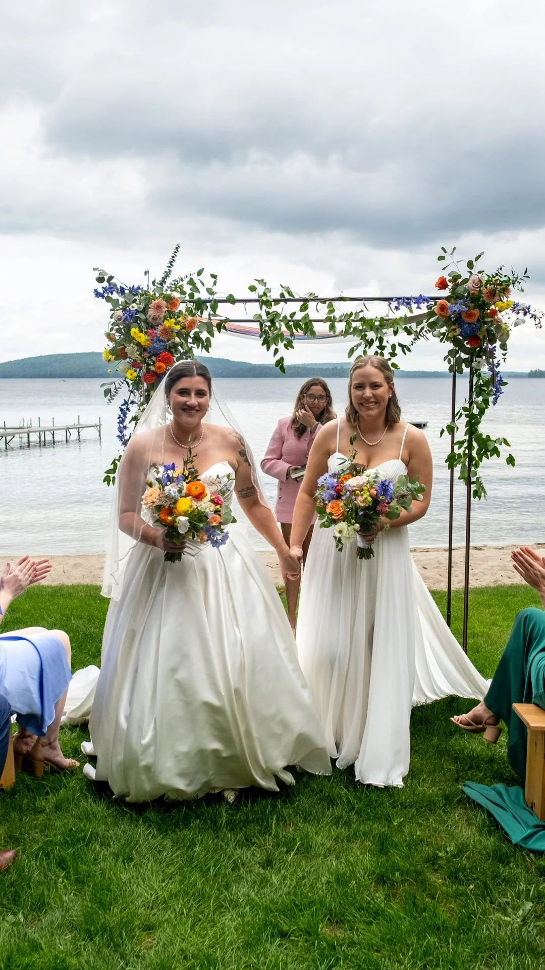 As the evening closed, the brides slipped into white button-downs and ran straight into the lake, holding hands and splashing their way toward the dock. It was a playful and adventurous moment that perfectly captured their connection, returning to the place where their story began.